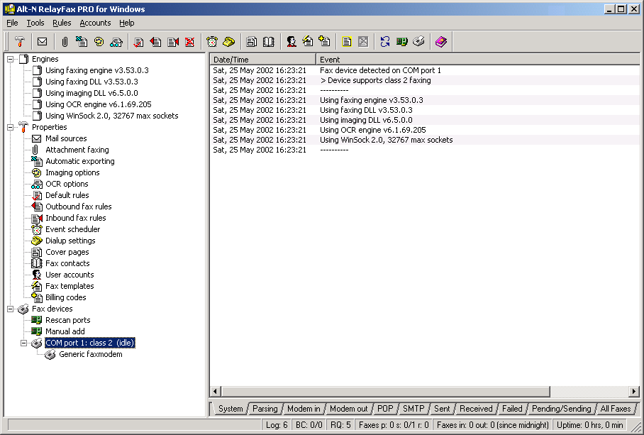 The RelayFax GUI is the main access point to all of RelayFax's options, settings, and logs.