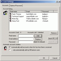 The Account settings tab allows you to create and view users. RelayFax will automatically add a new address to the list of accounts in the Address Listing whenever the first fax from them is received.