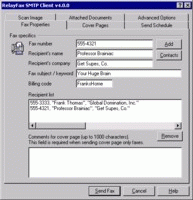 RelayFax SMTP Client make is possible to fax any document that you scan or print from your machine, sending it to the RelayFax Server. RelayFax SMTP Client will be opened automatically for completing your fax.
